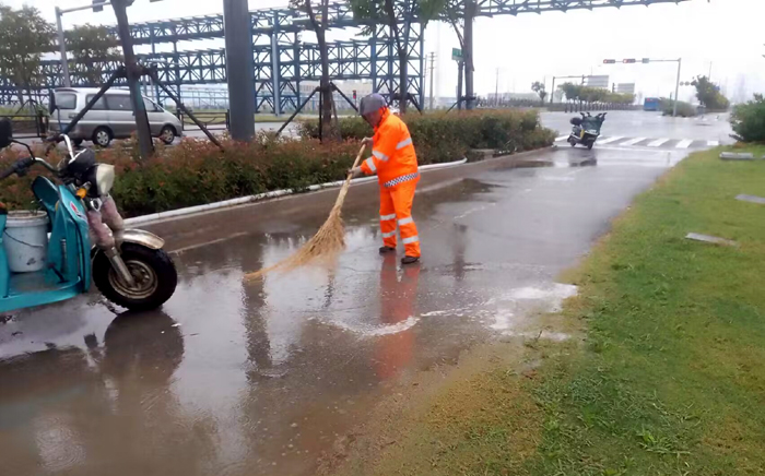 該分公司9個班組人員,在公司統(tǒng)一安排下,按時到達指定道路保潔路段。在班長的帶領下,不停的排查清理路面各類垃圾,揮動手中大掃把,清理道路積水30多處,徒手清倒果皮箱200多個,20臺大中型清掃車輛安全有序趕赴指定清掃路線,加滿車廂用水,工作臺班達40余個?,F(xiàn)場工作中黨員先鋒示范引領一路彰顯,人工清理路障石塊20多塊,清理上海路大風刮落梧桐落葉,樹枝30多袋,工作時長達4個多時,風雨中愛崗敬業(yè)畫面處處體現(xiàn),有力保障雨中新城道路環(huán)境整潔靚麗。(楊波)