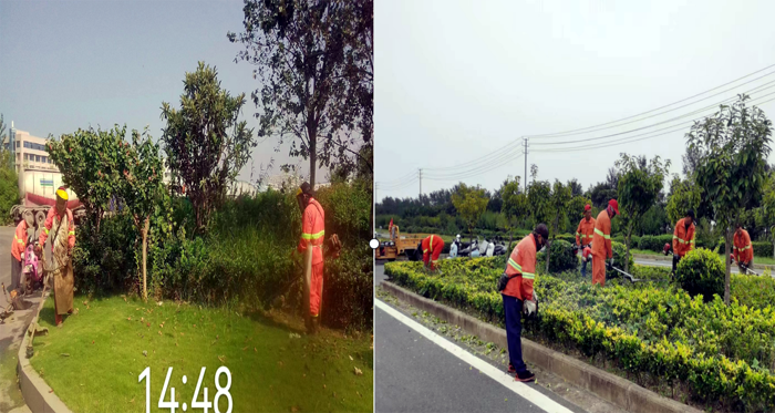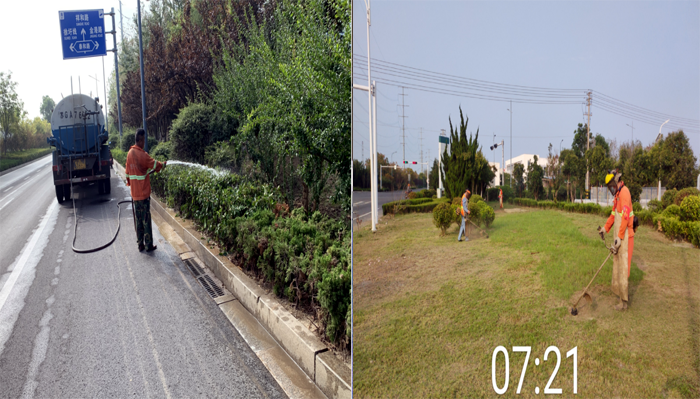 8月底,綠化養(yǎng)護(hù)班組兵分兩路強(qiáng)化綠地草坪進(jìn)行疏草、除雜等養(yǎng)護(hù)工作,對(duì)綠植進(jìn)行清枯枝、病蟲枝整形修剪,保持喬灌木的整體外形美觀;集中力量加固樹撐,清除雜草2萬余平方米。