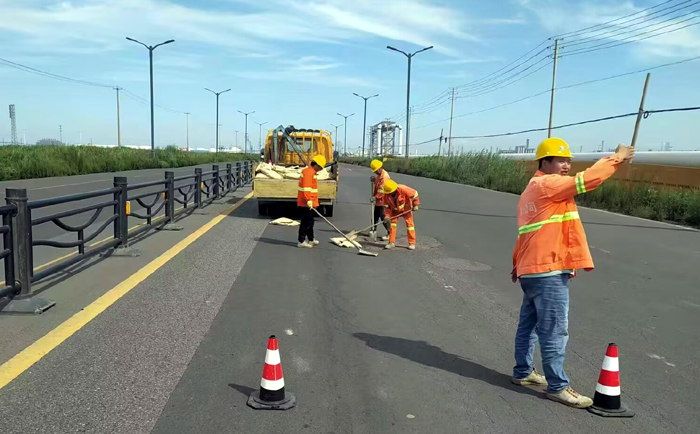 連日來,市政分公司組織人員深入一線,加班加點對賽事路線內(nèi)的市政設(shè)施情況進行全面摸底排查,對巡查發(fā)現(xiàn)的市政道路病害,有針對性地制定設(shè)施維修方案,精準(zhǔn)定向整治。 截止日前,該公司全體人員加班加點奮戰(zhàn)在一線,有序推進各項維修工作進程。當(dāng)前,已完成海濱大道、港前大道等多條瀝青路面維修186平方米、道路隔離欄更換維修86米;石化七道、石化三路等路段完成142平方米人行道磚鋪設(shè)、28米路緣石和73個擋車石維修工作;在疏港大道與海濱大道交叉口道邊加裝波形護欄220米;疏港大道、石化七道、石化三路更換維修雨排水管道168米;更換港前大道、石化區(qū)域內(nèi)鑄鐵檢查井蓋19個。
