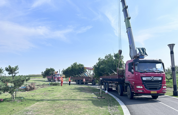 按照徐圩城建工作要求,綠化分公司在228國道進(jìn)行431顆欒樹的移植。該分公司按照工程要求制定工作計(jì)劃,合理部署、分工明確、相互配合。施工現(xiàn)場(chǎng),工作人員擺好安全錐、戴好安全帽,操作著機(jī)械設(shè)備,盡管天氣炎熱,大家也毫無怨言,他們用汗水提升新區(qū)“顏值”。