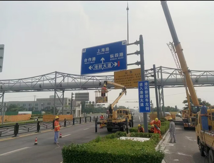 從5月起,市政分公司已著手15座標(biāo)志牌基座澆筑工作,7月初,完成了基礎(chǔ)養(yǎng)護期,達到安裝條件。因前階段準(zhǔn)備工作到位,為此次標(biāo)志牌安裝作業(yè)順利完成奠定了堅實的基礎(chǔ)。本次施工的道路包括港前大道、蘇海路、徐新路等8條道路,共拆除、安裝大型標(biāo)志牌15套,工程收入約十萬元。