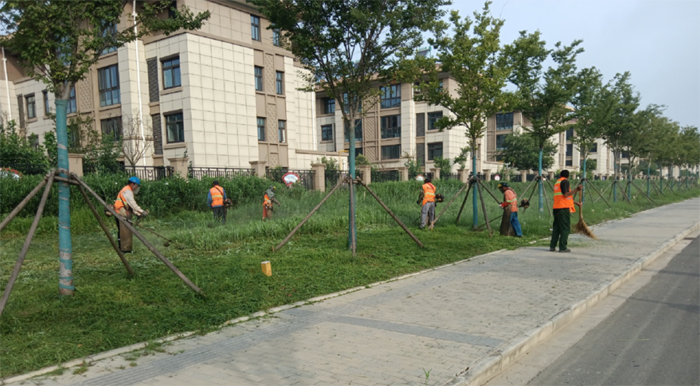 炎炎夏日,仍然阻擋不了綠化先鋒傾情奉獻(xiàn)的熱情。早晨6點(diǎn),大家就開始一天的工作了。修剪過程中采用人工、機(jī)械相結(jié)合的方式,對面積相對較大、地面相對平整且障礙少的草坪綠地,采用手推式草坪機(jī)進(jìn)行修剪;對障礙物較多的綠化采用人工拔草的方式。驕陽似火,綠化衛(wèi)士們干的熱火朝天,身上的衣服干了濕、濕了干,累了就席地而坐,休息一會,然后繼續(xù)工作。經(jīng)過兩天的持續(xù)奮戰(zhàn),共清理雜草5萬平方米,出色的完成了此次雜草清理任務(wù)。他們用不辭辛苦、愛崗敬業(yè)的態(tài)度換來了新區(qū)優(yōu)美的環(huán)境,也換來了不息的蓬勃朝氣。(陳小東)