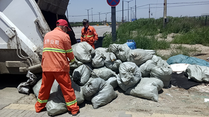 夏日,人們夜生活比較豐富,街道飯店、路邊燒烤等餐飲垃圾原因。在這樣的日子里,人們多了聚會吃喝玩樂的時間,導(dǎo)致各類生活的垃圾異常暴增。環(huán)衛(wèi)“戰(zhàn)士”們要面對著烈日炎炎高溫下收運(yùn)垃圾的巨大困難,(原有兩臺垃圾清運(yùn)車)。由于一臺清運(yùn)車在大修,現(xiàn)在只有一輛車在作業(yè),收運(yùn)垃圾根本忙不過來,根據(jù)這種工作現(xiàn)狀,垃圾清運(yùn)班采取全員加班、集中清理、延長時間等形式開展工作。與此同時,環(huán)衛(wèi)“戰(zhàn)士”們還需要考慮在進(jìn)行垃圾收運(yùn)之時、合理做好自身防護(hù)、科學(xué)安排垃圾收運(yùn)路線,并根據(jù)調(diào)研下安排的收運(yùn)頻次,進(jìn)行現(xiàn)場調(diào)整,從而有條不紊地以 “規(guī)范、安全、密閉 ”為原則開展垃圾清運(yùn)。