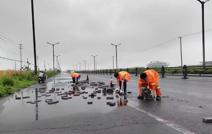 中午12時(shí),保潔分公司接到徐圩城建應(yīng)急處理電話,港前大道向南處近2000多米長路面存在大量拋灑磚塊,對過往車輛造成極大安全隱患,極易引發(fā)安全事故,嚴(yán)重影響行車安全。該分公司了解情況后,立即組織安排突擊隊(duì)員進(jìn)行及時(shí)清理?,F(xiàn)場,3名身著橘紅工作服的養(yǎng)護(hù)人員首先擺放了安全警示錐,隨后徒手進(jìn)行拋灑物的撿拾工作。經(jīng)過3個(gè)多小時(shí)的努力,累計(jì)搬運(yùn)磚塊近800多塊,及時(shí)消除了安全隱患。該路段又恢復(fù)了往日的干凈整潔,車輛通行安全暢通。(楊波)